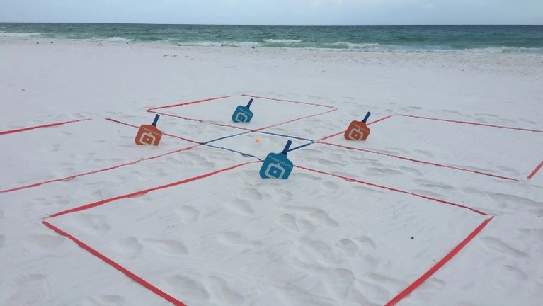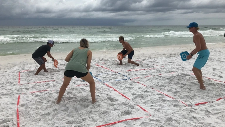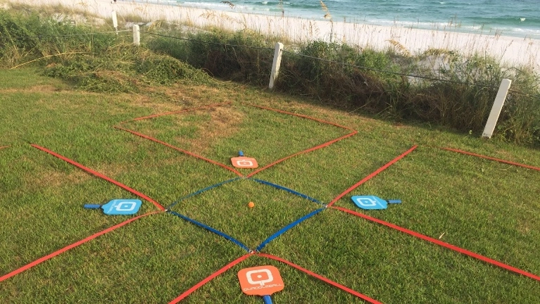 Quaddleball is a new game filled with fun, action and excitement for any and everyone! Seriously, the game can be played with 2 - ? friends (although it might work a little better with 2-15 friends). This game throws a fun twist into the playground foursquare we all know and love: everyone plays with a paddle! Our family has been unofficially Quaddleball-ing at the beach, in backyards, and at our local sand volleyball court for about 15 years. We love it so much we finally decided it was time to share Quaddleball with the world! Bring the same joy to your family and friends and get yourself a Quaddleball set today!