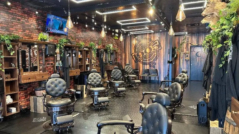 - Barber Chairs(13), Styling stations (mirror, counter, lighting),Electrical layout,Floor plan layout,Waiting area,Reception desk,POS counter, waiting benches and chairs, hot towel machines, lather machines, inventory, POS system,POS Software, office space, CCTV, iPads(6), TV's(8),Wifi equipment business use and guest use, SONOS sound system, Capes, towels, website + domain, phone number, social media accounts, customer database, google data listings, wall decor, taxidermy, custom lighting, custom cabinetry, Custom sinks and washing station, washer/dryer