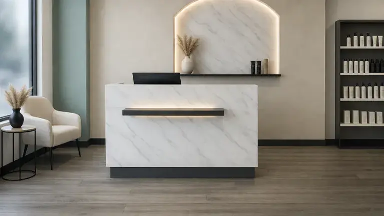 Full reception, waiting area, and retail display
