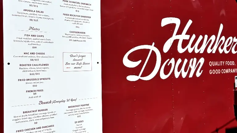 - Hunker Down is the sole food trailer at Hinterland Bar and Carts offering elevated bar food. In addition to a deep menu, the soft serve machine creates additional revenue for the business all year round.